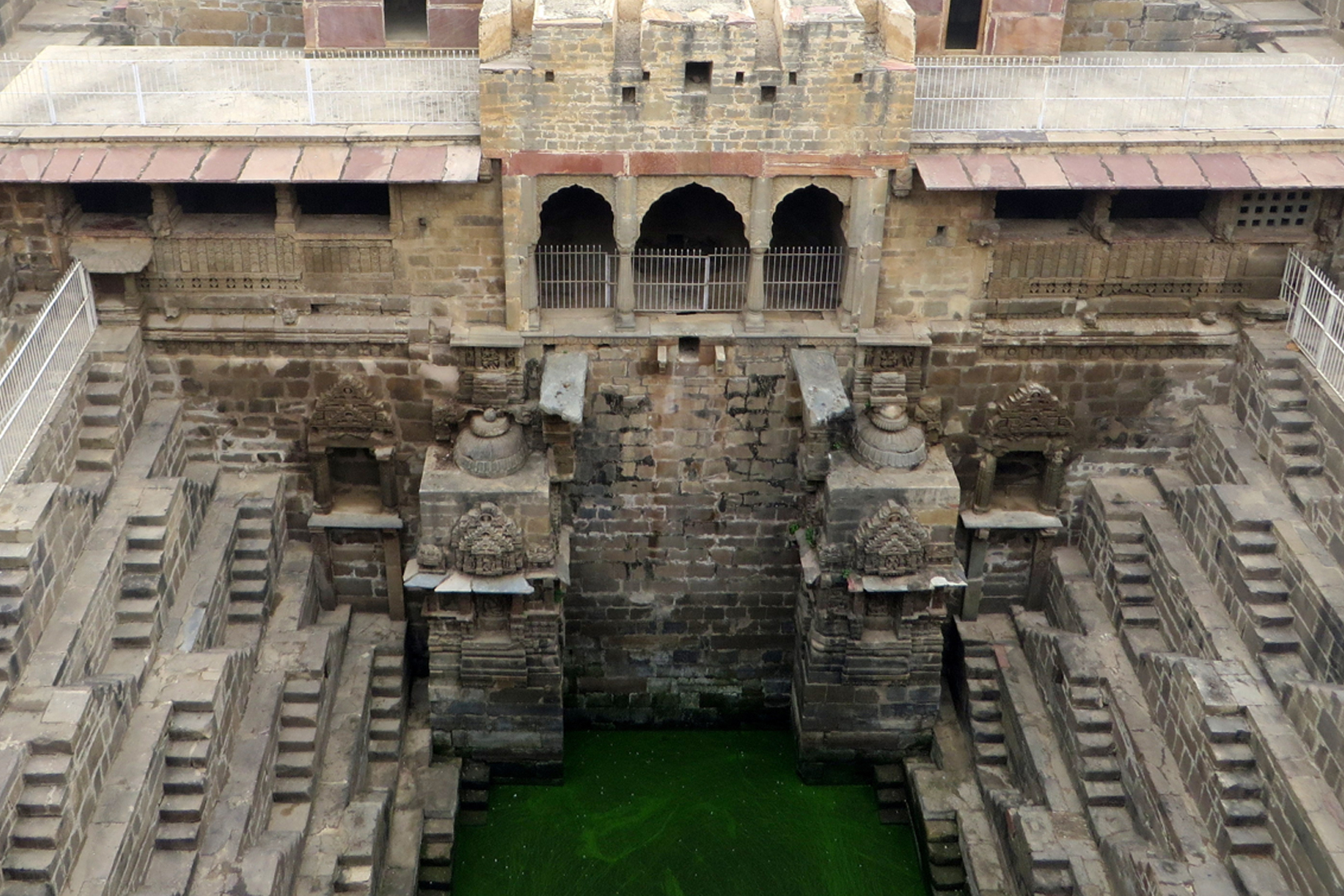 There are nine subterranean levels to the well and descent of Neemrana Baori